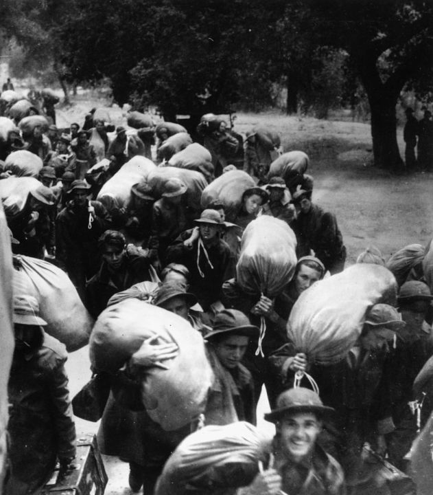 After the start of World War II in 1939, the U.S. and Californian economies improved thanks to the defense industry’s new need for production. Some migrants who had desperately been looking for jobs on farms ended up joining the military or finding work at shipyards and defense plants along the West Coast.