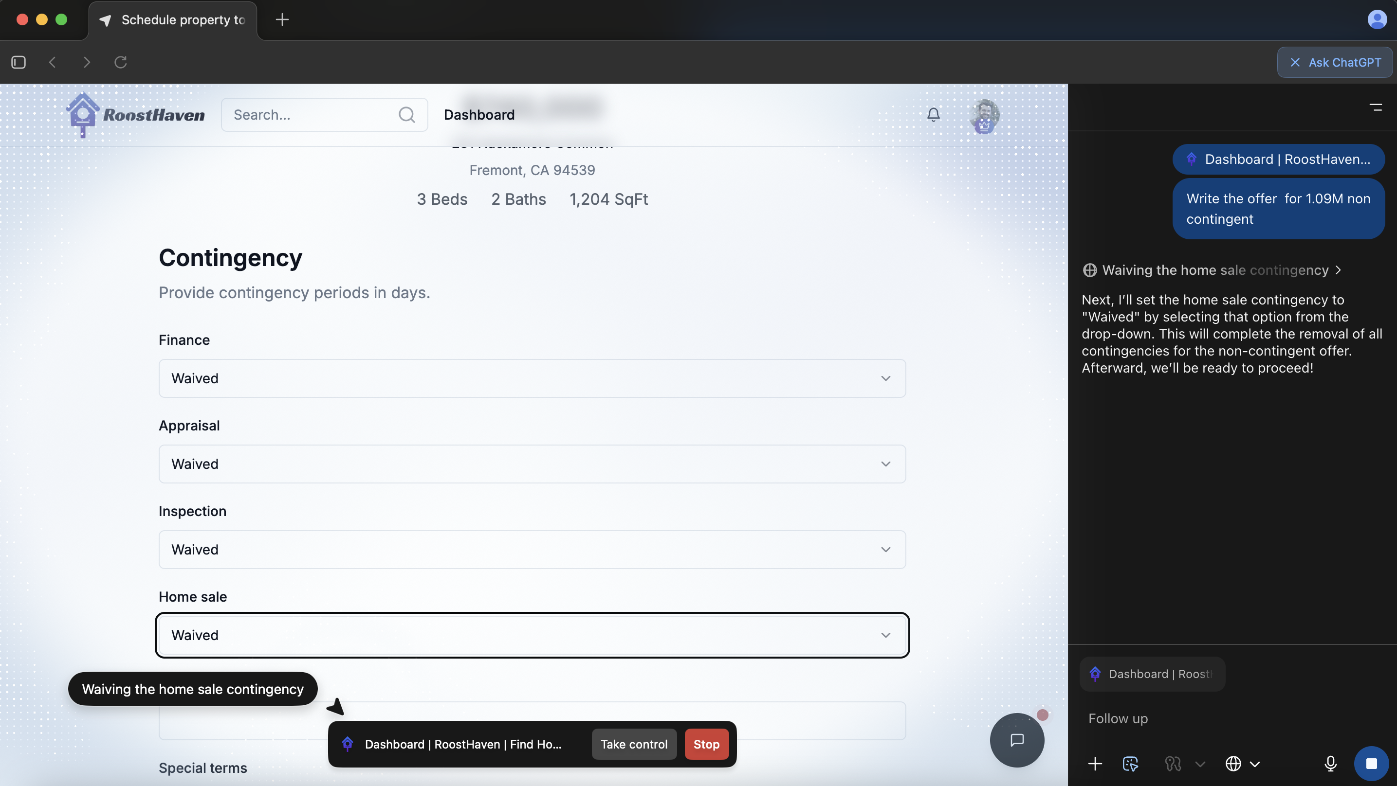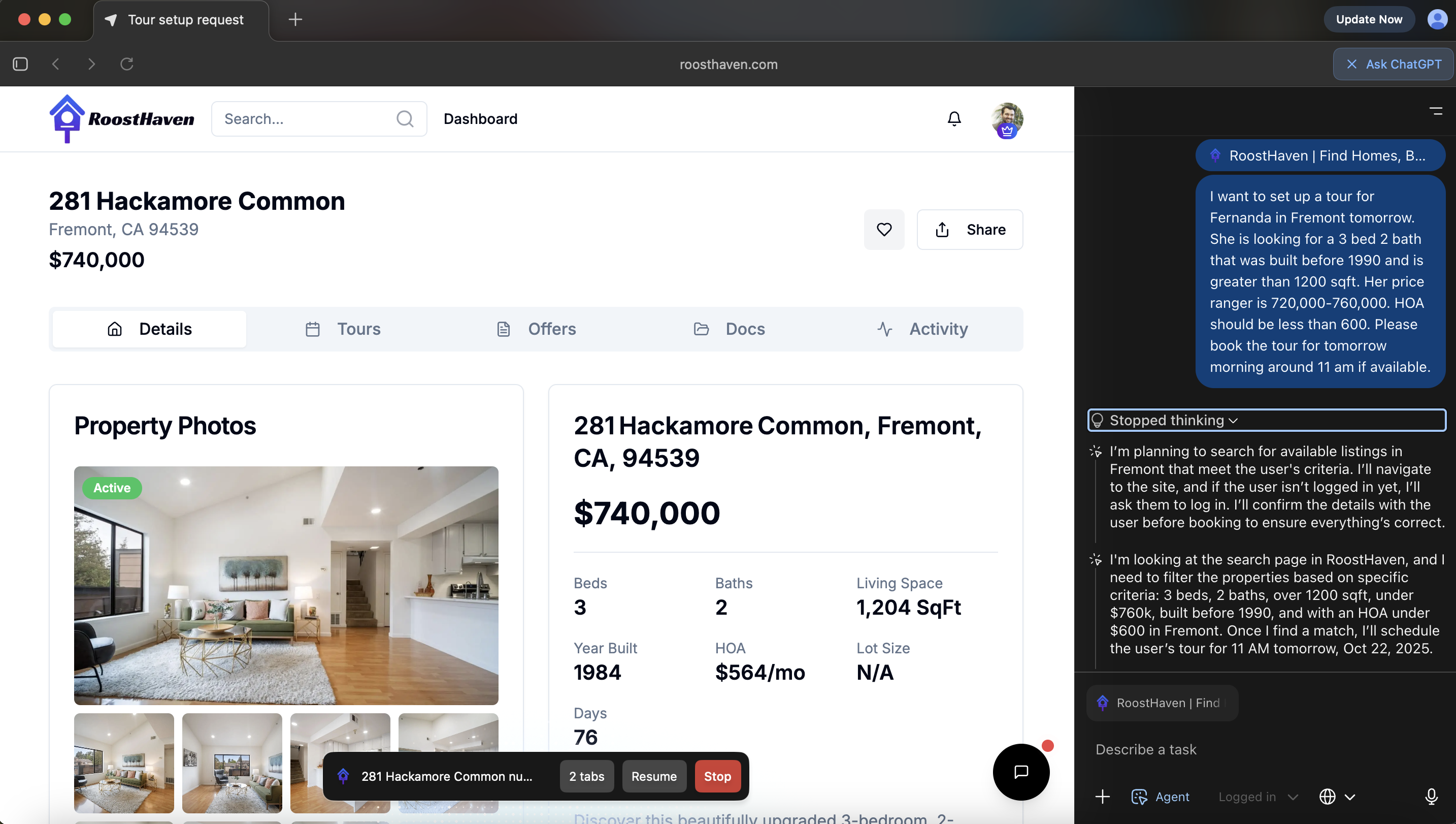 MENLO PARK, CA, UNITED STATES, October 22, 2025 /EINPresswire.com/ -- As OpenAI introduces ChatGPT Atlas, a new browser powered by AI agents capable of completing tasks directly on the web, RoostHaven is emerging as one of the first real-estate platforms structurally ready for this next generation of automation.During internal tests, users exploring RoostHaven through ChatGPT’s new Atlas browser successfully scheduled property tours and submitted offers once logged in — demonstrating how RoostHaven’s action-based design can naturally support AI-driven workflows without requiring custom integrations.