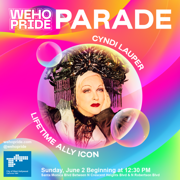 “I love Pride, I love West Hollywood! I love a parade. I am very excited about being WeHo Pride’s Lifetime Ally Icon. Can’t wait to see you all there,” said Lauper.