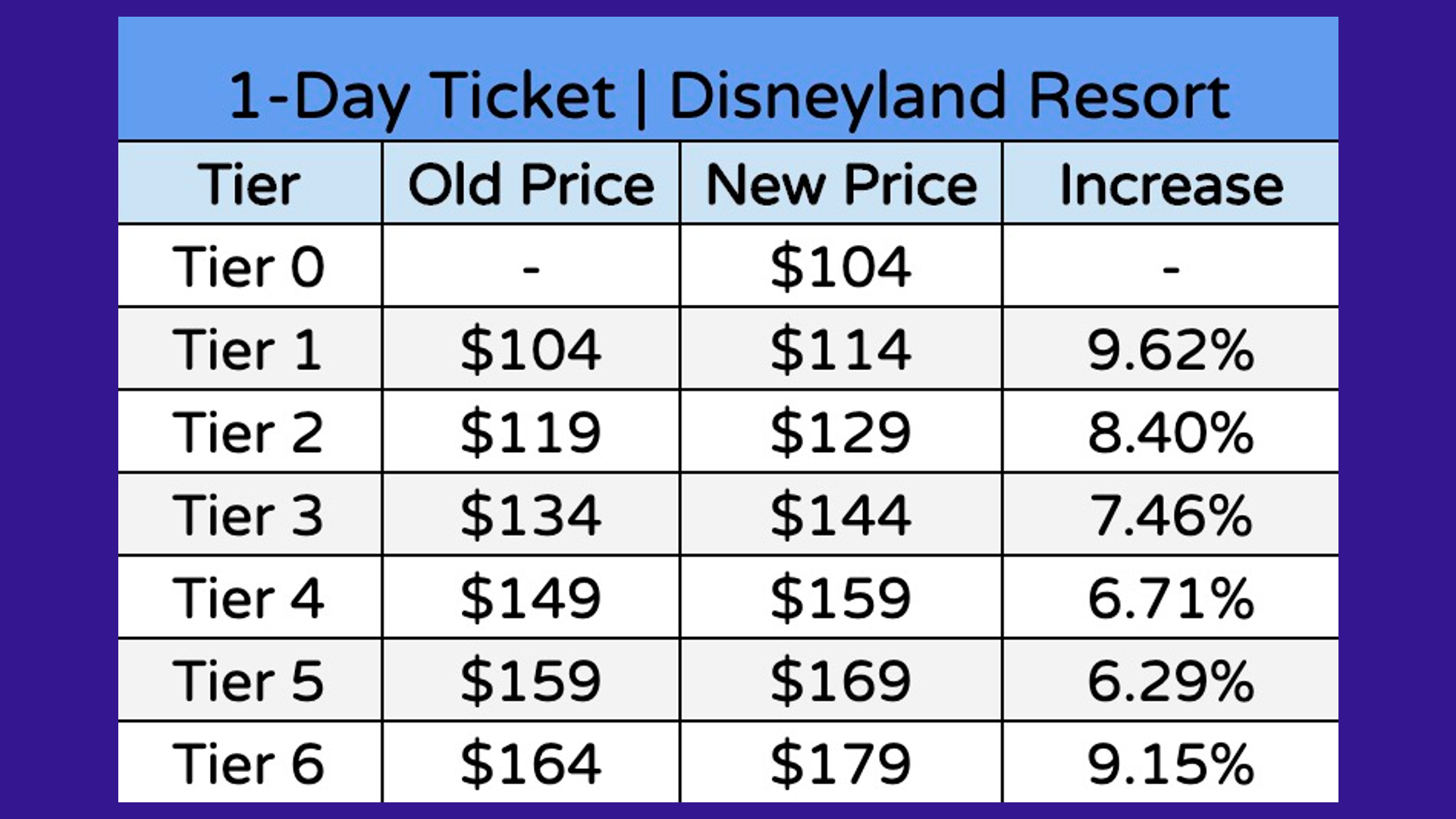 Disneyland also introduced a new “Tier 0” one-day ticket that will cost $104 per day and will be valid on the least crowded days of the year.