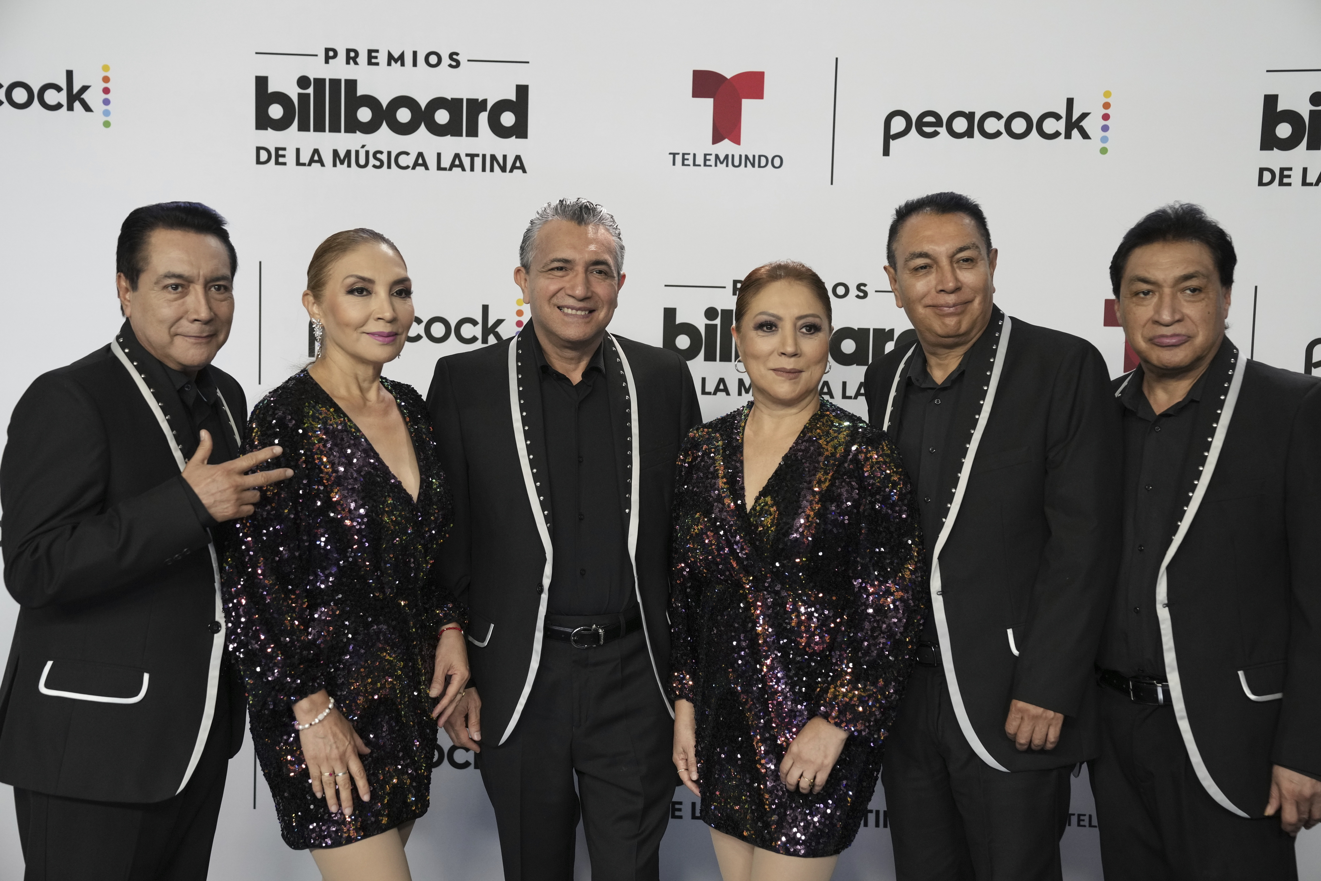 Mexican musical group Los Angeles Azules poses on the blue carpet at the Latin Billboard Awards, in Coral Gables, Fla., Thursday, Oct. 5, 2023. (AP Photo/Rebecca Blackwell)
