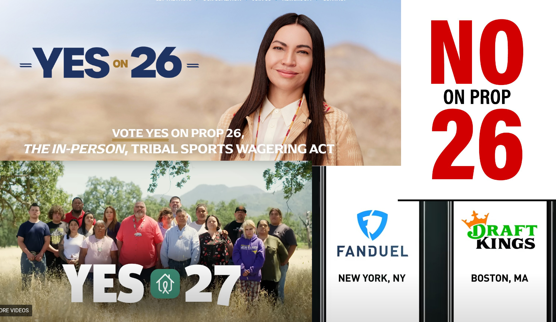 Native American tribes are backing Proposition 26, which would make sport betting legal in-person only. All bets must be placed at either a tribal casino location or a horse racing track.