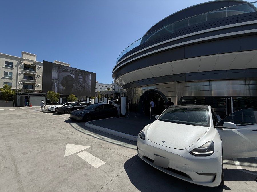 A Tesla isn’t required for entry, but an EV will get you a spot in the parking lot at one of 80 Superchargers – the largest urban station in the U.S.