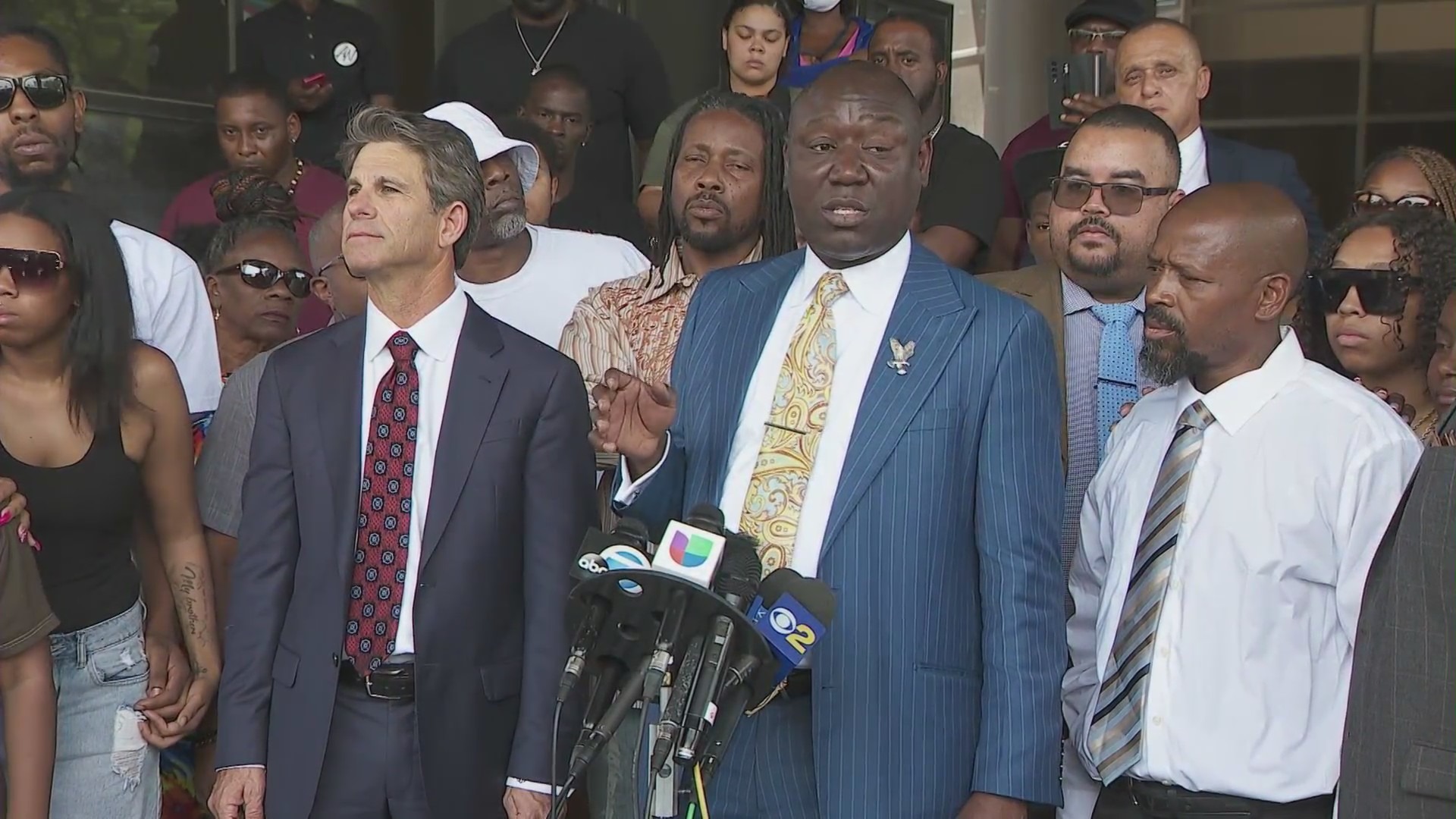 Attorney Ben Crump, shown on July 20, 2022, represented the family of Rob Adams, who was fatally shot by San Bernardino police. (KTLA)