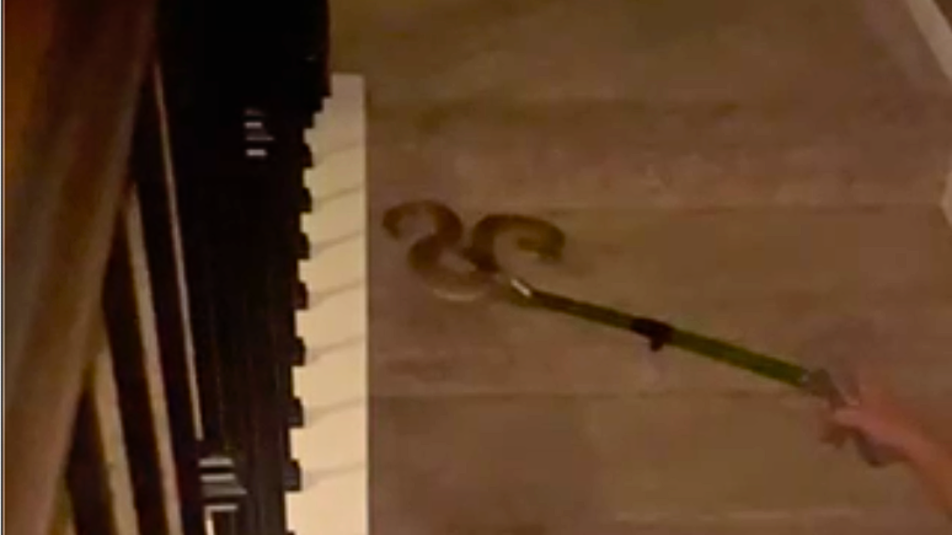 Video showed Jessup using a grab tool to pick up the snake, which was then placed into a plastic container.