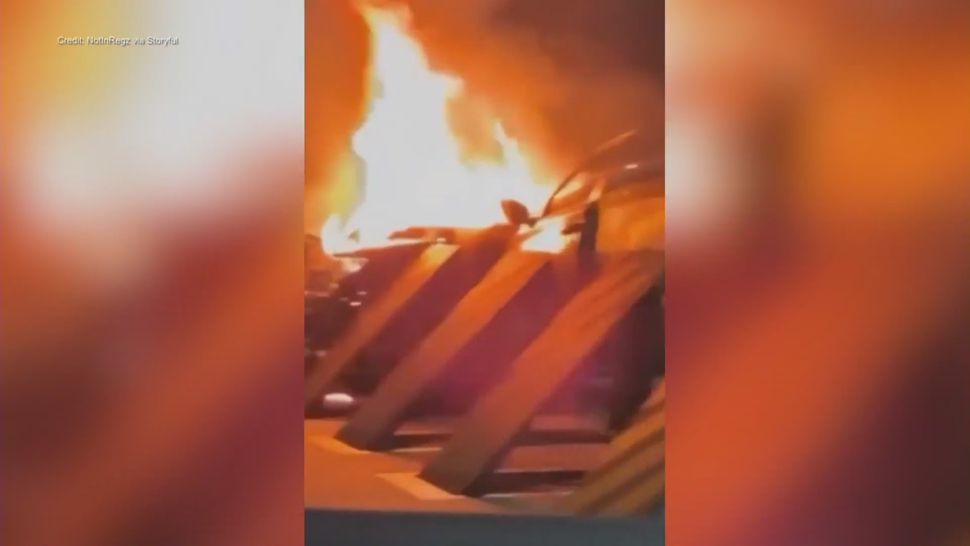 Guards deployed “final denial barriers” which stopped the car in its tracks. Video captured by a passing driver shows the vehicle then burst into flames.