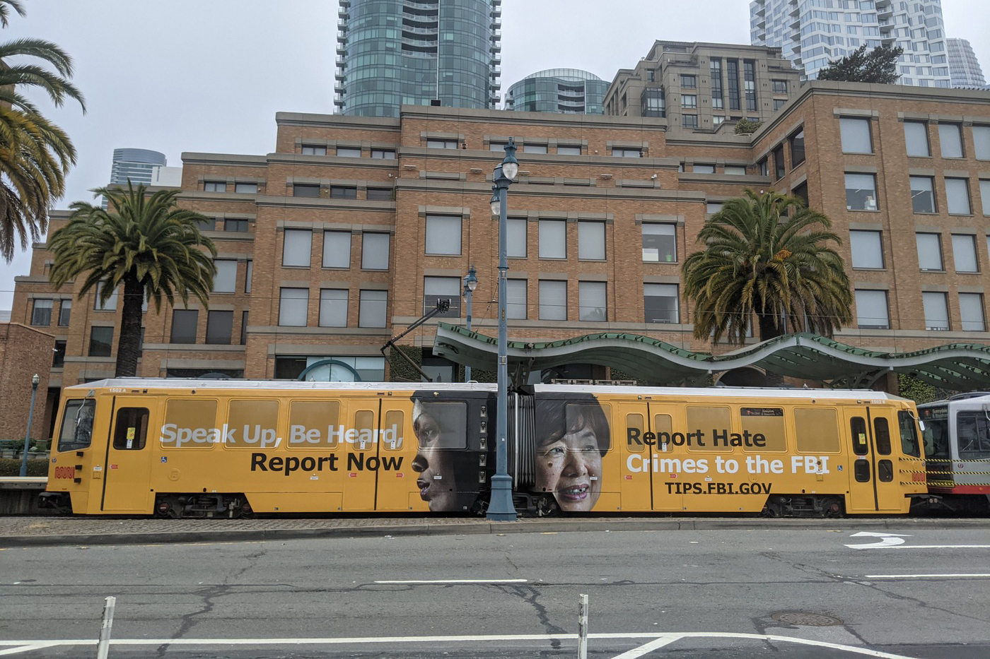 The bureau placed an ad on a city train that reads “Speak Up, Be Heard, Report Now. Report Hate Crimes to the FBI.” The ad also lists a website — tips.fbi.gov — where people can file reports of hate crimes.