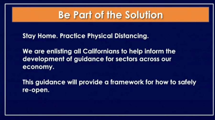 The governor said California’s residents have largely abided by stay-at-home orders and hospitalizations for COVID-19 have remained stable over the past few weeks.