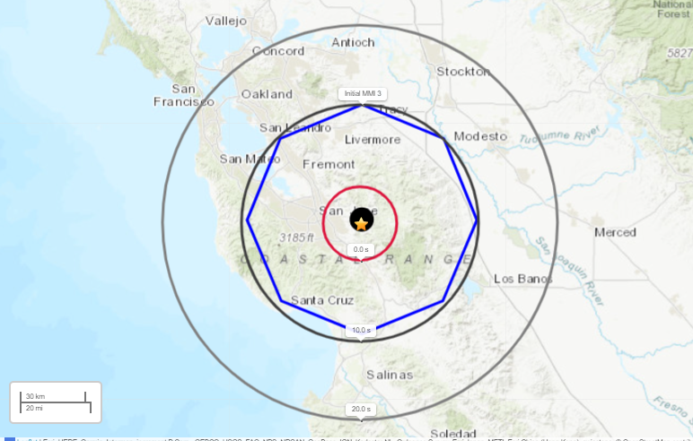 A USGS “Did you feel it” map shows the quake was felt as far south as Salinas and as far north as Fairfield, California, north of San Francisco.