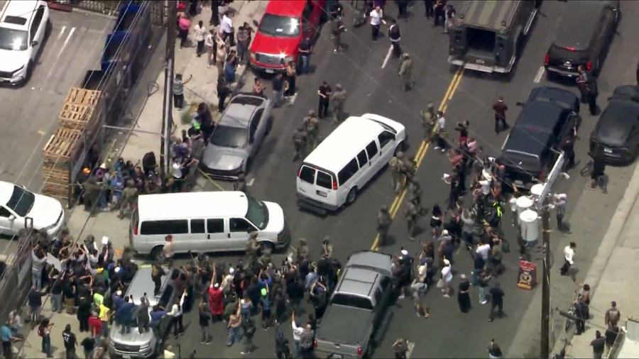 Sky5 was overhead the moment federal agents and demonstrators met outside an Ambiance Apparel location on the 900 block of Towne Avenue in downtown L.A.