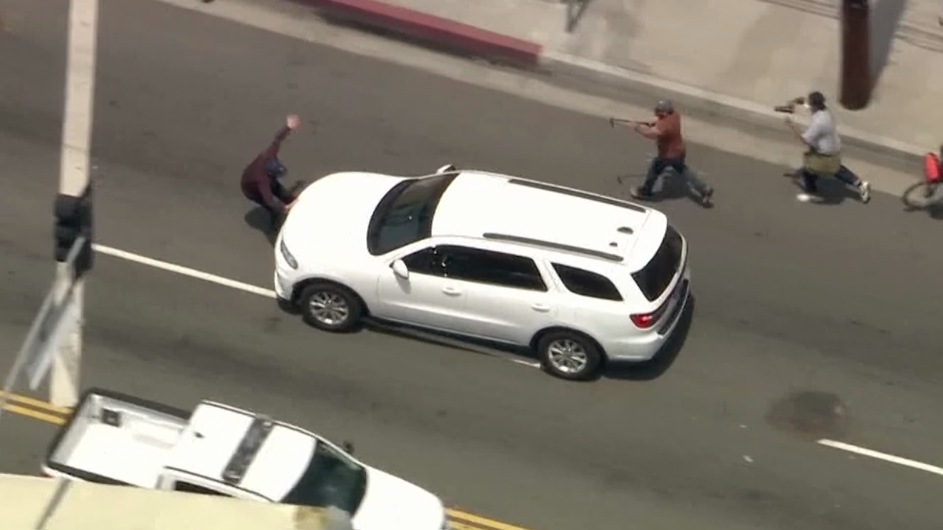 At one point, protesters attempted to stop one of the SUVs from leaving the location. One protester who was pounding on the hood of the SUV was knocked to the ground and partially run over by the driver of that vehicle, who then reversed and sped away.