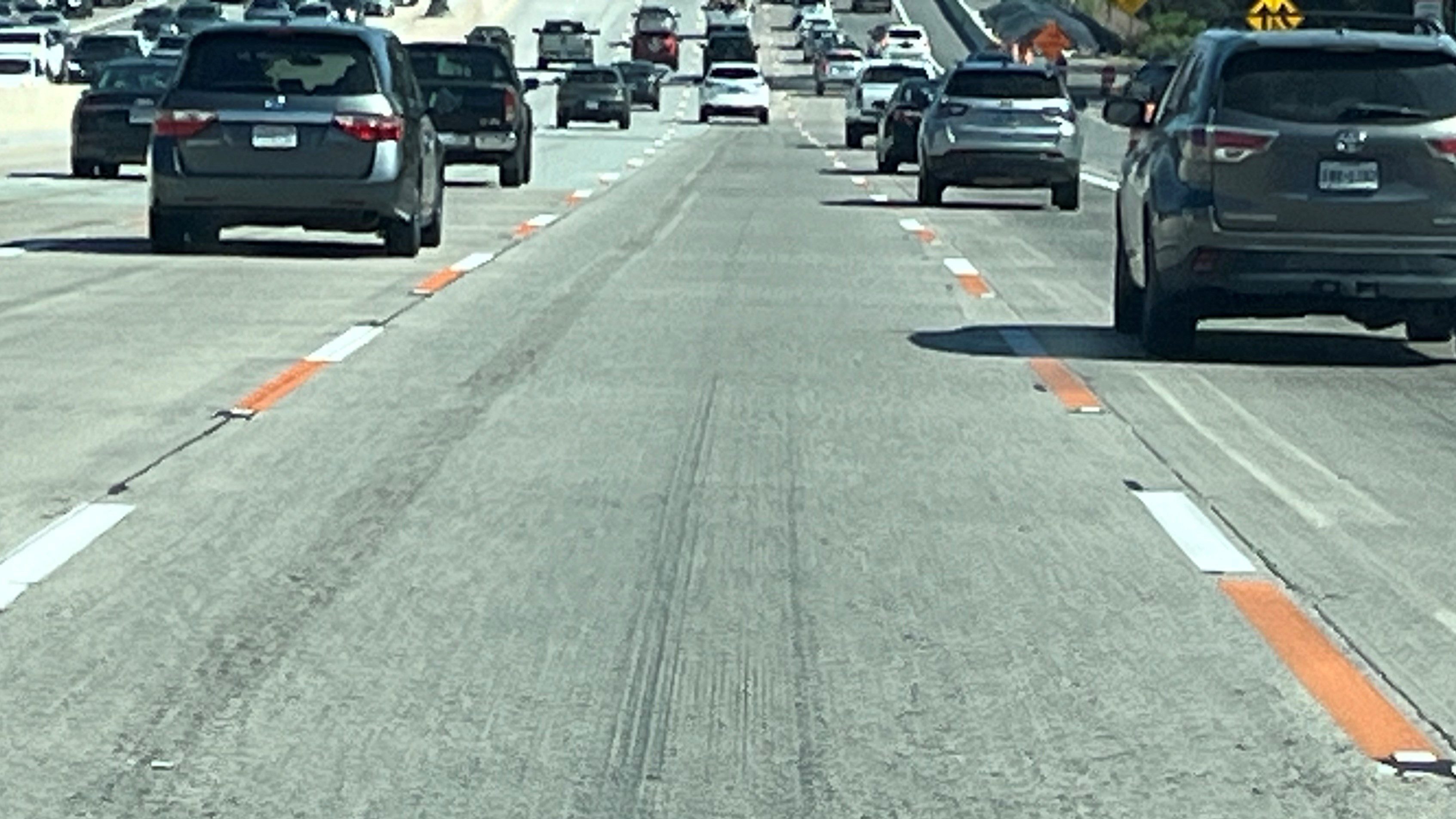 The Caltrans pilot program began on the 5 Freeway in northern San Diego County, where drivers began encountering orange and white lane striping through the Build North County Corridor Project in late 2021.