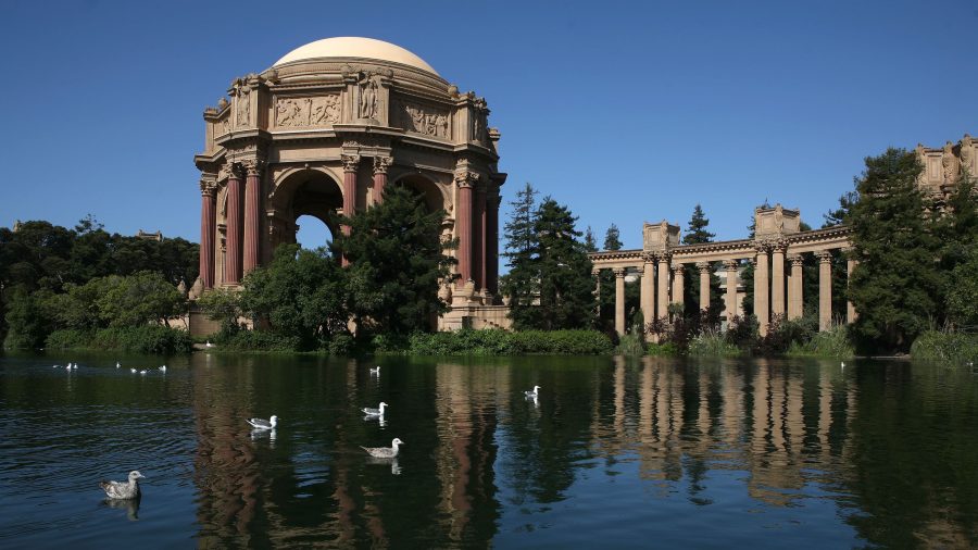 SAN FRANCISCO - MAY 08: Birds swim near the Palace of Fine Arts rotunda on May 8, 2009 in San Francisco, California. The second phase of the Palace of Fine Arts restoration is near completion and the rotunda is expected to be open to the general public in the coming weeks. The Palace, built in 1915, was designed by architect Bernard Maybeck for the 1915 Panama-Pacific International Expo. The Palace is the only remaining structure from the Panama-Pacific Expo. The $21 million makeover is expected to be completed by the end of the year. (Photo by Justin Sullivan/Getty Images)