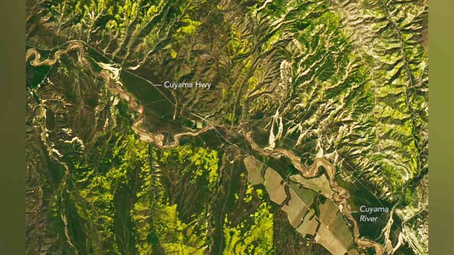 The National Aeronautics and Space Administration (NASA) released satellite images comparing an arid April 2022 desert in Carrizo Plain National Monument, located just west of Bakersfield, to a blooming one on April 6.