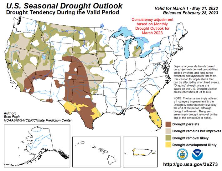 NOAA released its monthly precipitation outlook, which projects even more rainy days for the state in March. That means a rainy season will continue to put the drought on the defensive into the start of spring.