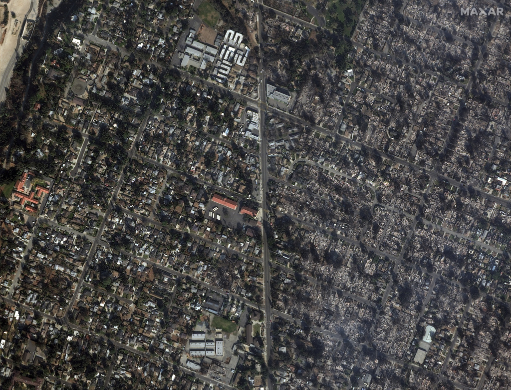 Maxar Technologies has shared before-and-after images of several neighborhoods ravaged by the Palisades and Eaton wildfires. Use the slider below to compare the photographs.
