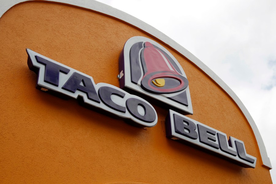 FILE - This Friday, May 23, 2014, file photo, shows the sign at a Taco Bell in Mount Lebanon, Pa. (AP Photo/Gene J. Puskar, File)