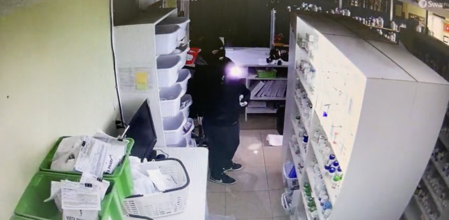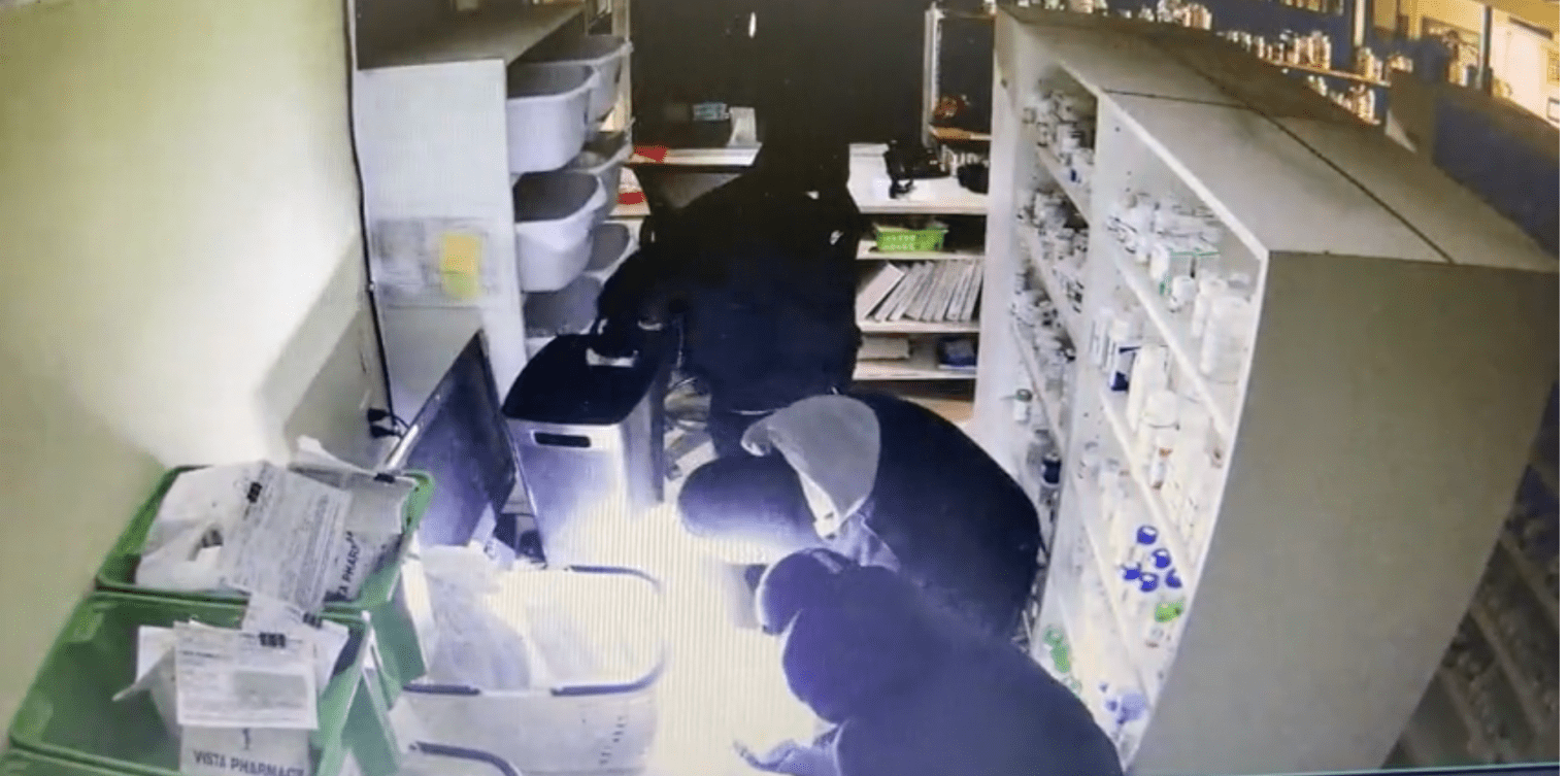 Vista Pharmacy manager Anhthu Tran says she and her husband were awoken by the sound of the alarm being triggered at their store around 3:20 a.m. Saturday. When they checked the security camera footage, they saw multiple suspects breaking into their business.