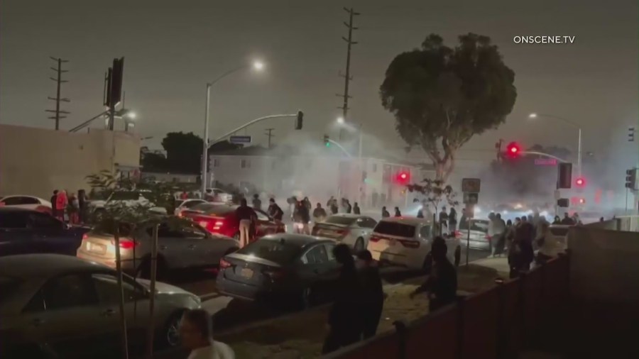 On July 14, police responded to reports of a burglary and an illegal street racing takeover at the intersection of Orange Avenue and Harding Street. Video from the scene showed a car doing several donuts as the crowd continued growing.