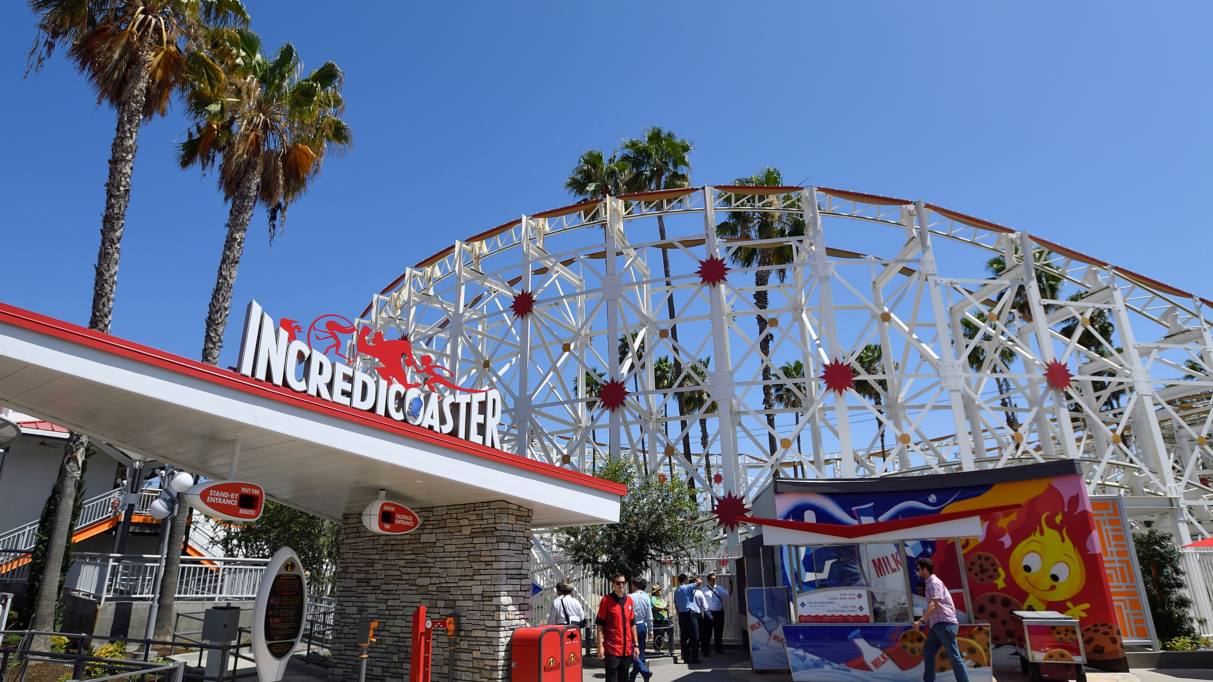Twenty people had to be escorted off the Disney California Adventure Park’s Incredicoaster after the ride stopped on the tracks Sunday.