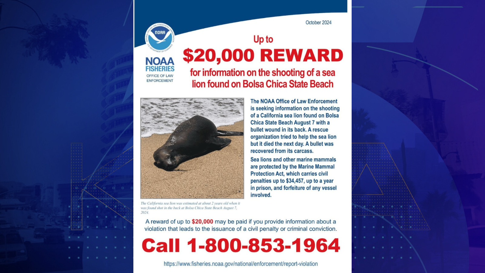 A $20,000 reward has been offered for information on the shooting that leads to the issuance of a civil penalty or a criminal conviction, the NOAA said.