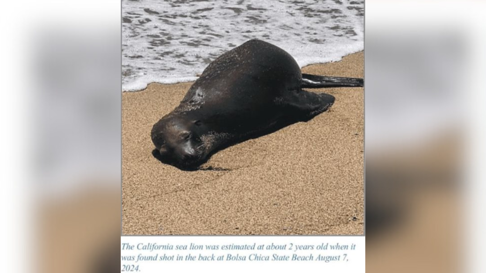 According to a bulletin put out by the National Oceanic and Atmospheric Administration and recirculated by the Orange County Sheriff’s Department, the California sea lion was found with a bullet wound in its back at Bolsa Chica State Beach on Aug. 7.
