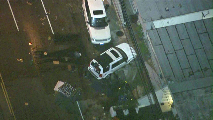 Three pedestrians were injured in the crash, in which a vehicle struck a fire hydrant and several parked cars, according to Deputy Robone with the Los Angeles County Sheriff’s Department.