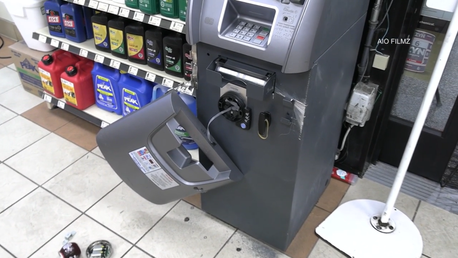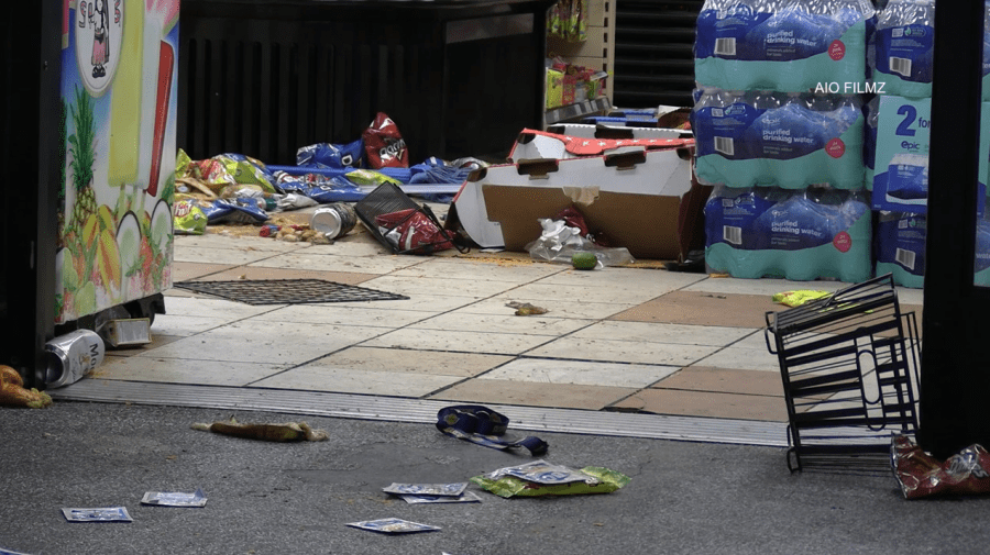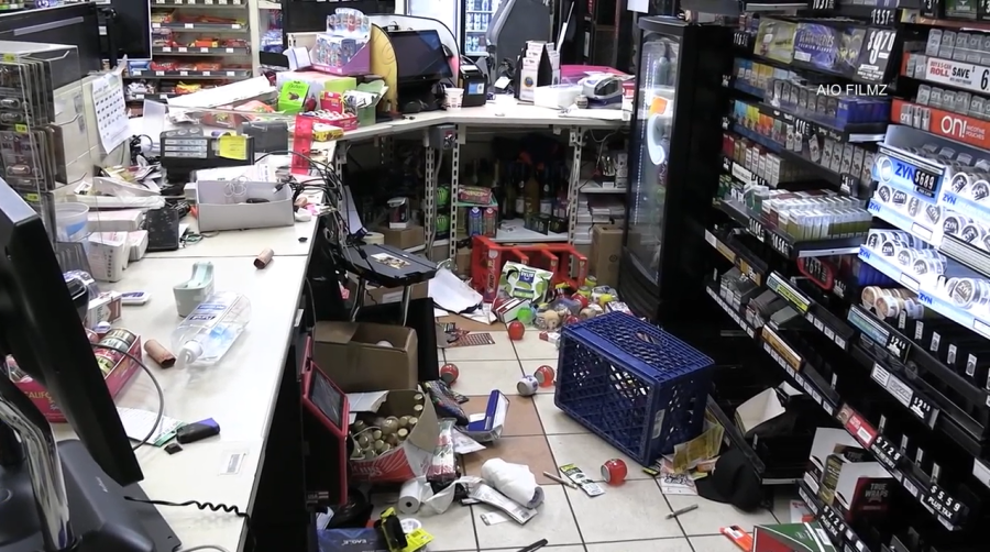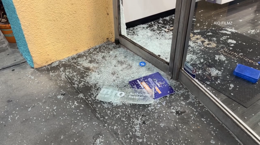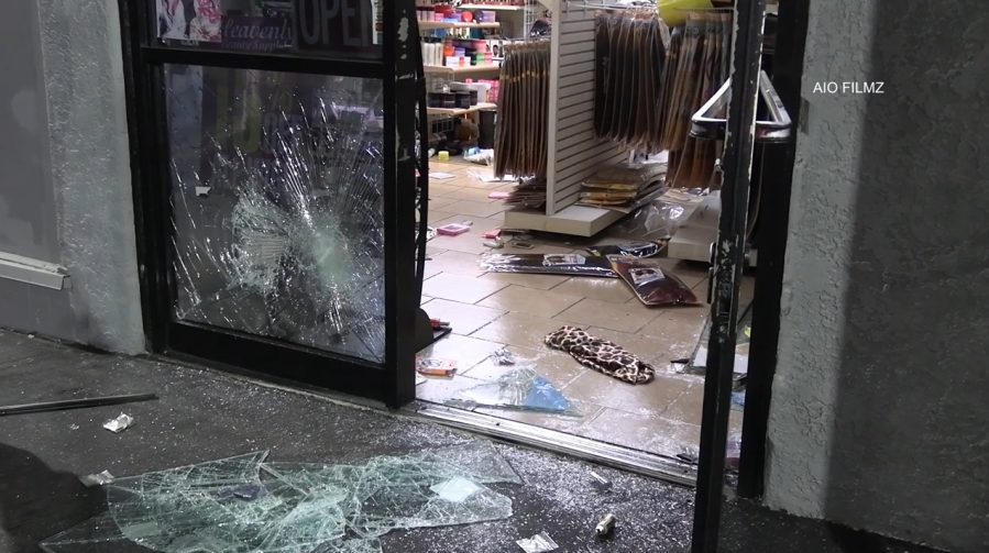 Shattered glass front doors and merchandise were seen scattered at both the beauty supply and adjacent auto repair shop. Merchandise was also strewn about the convenience store, and it appeared that an ATM within the store was broken into, although it is not known if any money was taken from it.