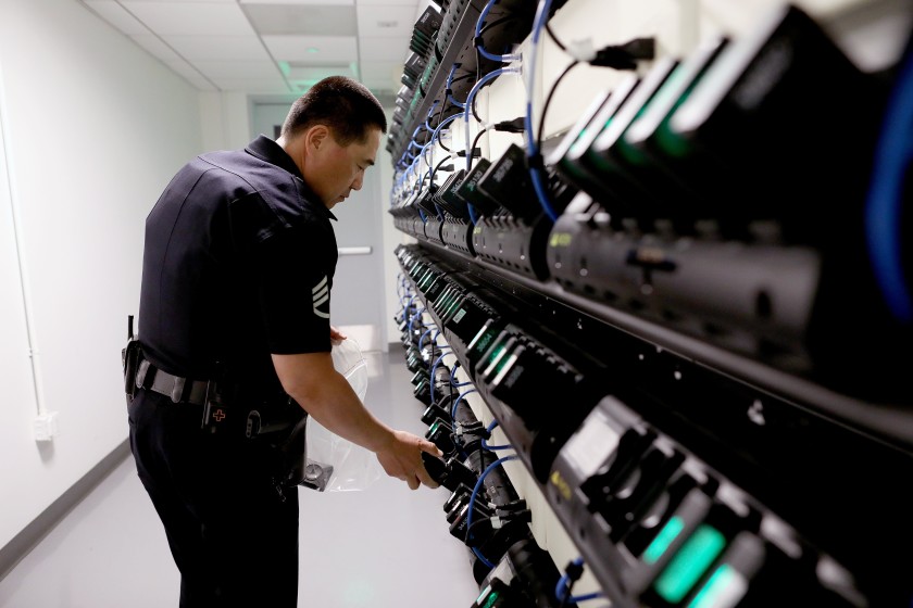 Nearly a fourth of Los Angeles police officers involved in incidents where serious force was used failed to activate their body cameras in a timely manner, according to a recent review of such cases by the department’s inspector general.
