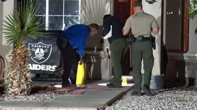 Investigators search for clues at a Victorville home after three bodies were discovered in an Apple Valley desert on April 29, 2020. (LOUDLABS)