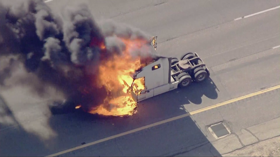 A Sig Alert was issued along the 5 Freeway as firefighters battled the flames, according to the CHP. The No. 3 and 4 lanes were expected to reopen once the flames are extinguished.