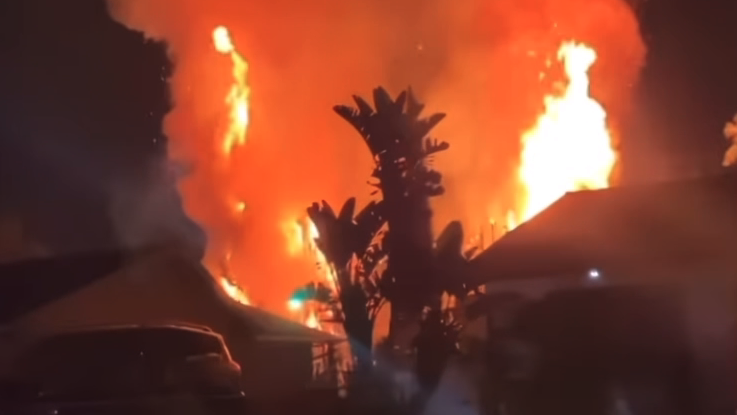 Residents say a neighbor was setting off illegal fireworks during a 4th of July party when the blaze began. Flames could be seen burning 20 feet into the air in a video shared with KTLA.