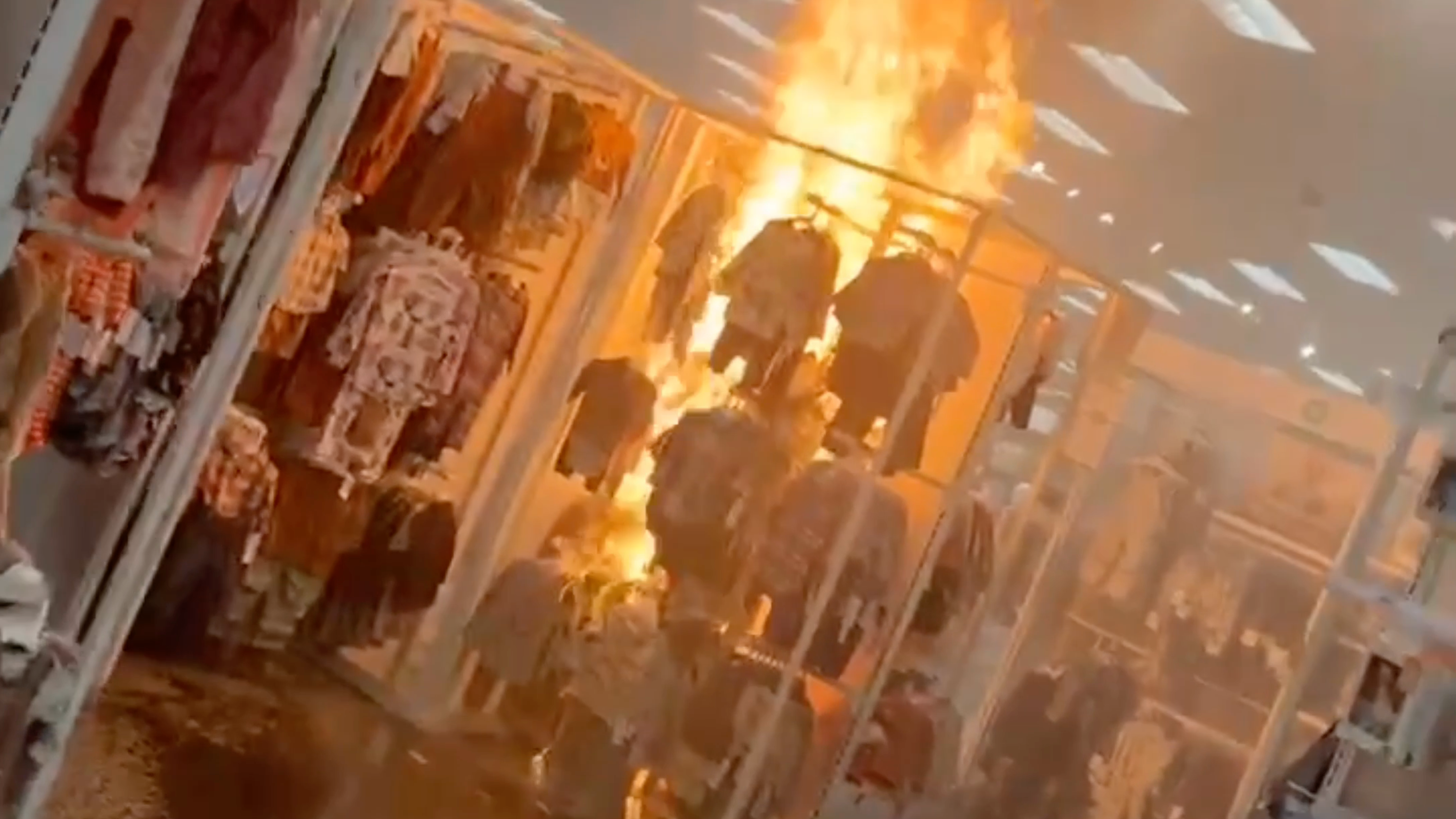 The video showed flames bursting toward the ceiling from a children’s clothing rack.