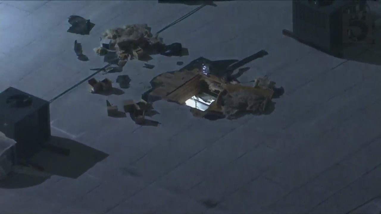 “It looks like they cut through the rooftop and got away with [what looks to be] a lot of merchandise…you can see bags and boxes scattered,” KTLA 5’s Rich Prickett said.