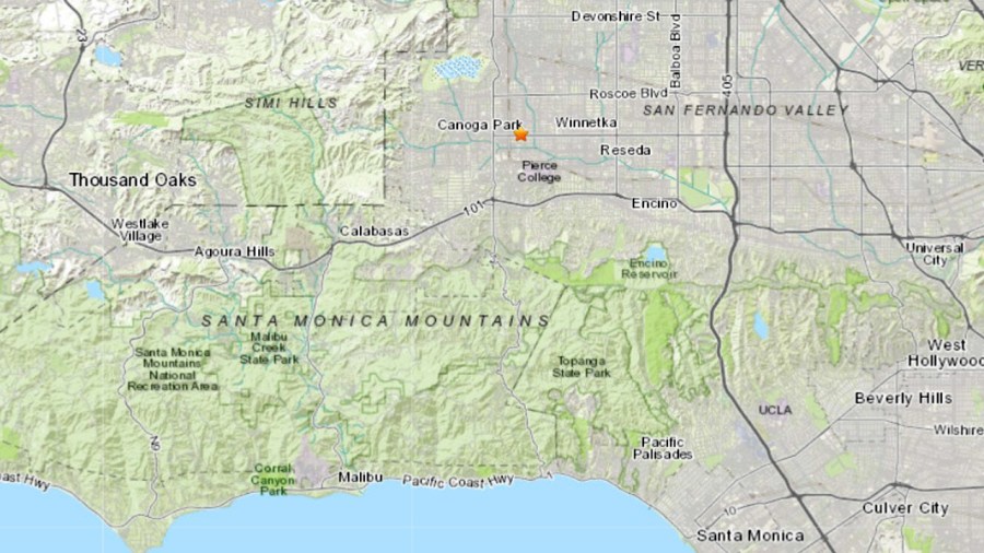 The temblor struck at 7:35 a.m. less than half a mile from Canoga Park and 2.4 miles north northeast of Woodland Hills, according to the U.S. Geological Survey.