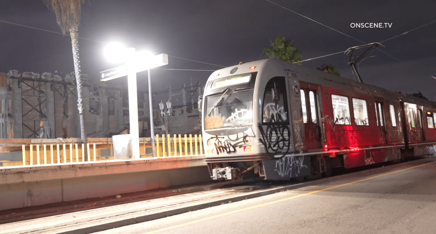 “Around midnight, approximately 50 trespassers blocked two A Line trains traveling northbound and southbound at the intersection of Washington Boulevard and Maple Street, south of downtown Los Angeles,” Metro said in a statement given to KTLA. “The trespassers began to spray paint on both trains and gained entry into the southbound train and sprayed paint on the interior of the train. During the incident, no operators or passengers were harmed and service was delayed around 20 minutes.”