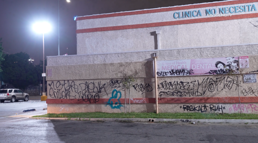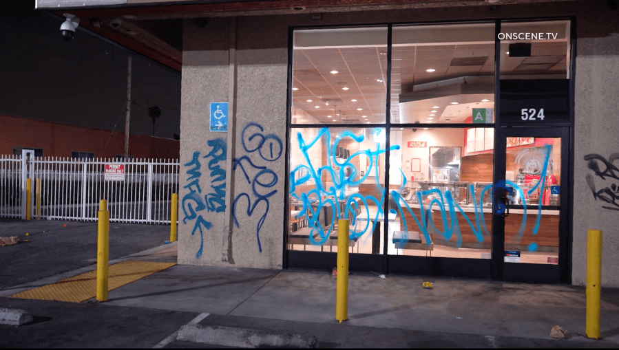 Multiple area businesses also had graffiti scrawled on them, including a Panda Express, a WaBa Grill, a dialysis clinic and a medical building, among others.