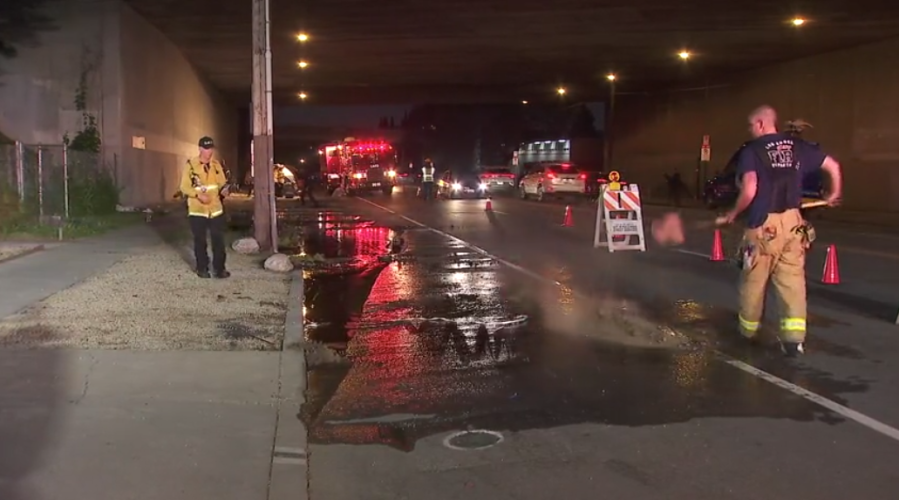 Fire crews used nearby soil to create dams in an attempt to contain the leaking oil from spilling into storm drains. Authorities estimated that around 1,000 gallons of oil made its way out of the ground.