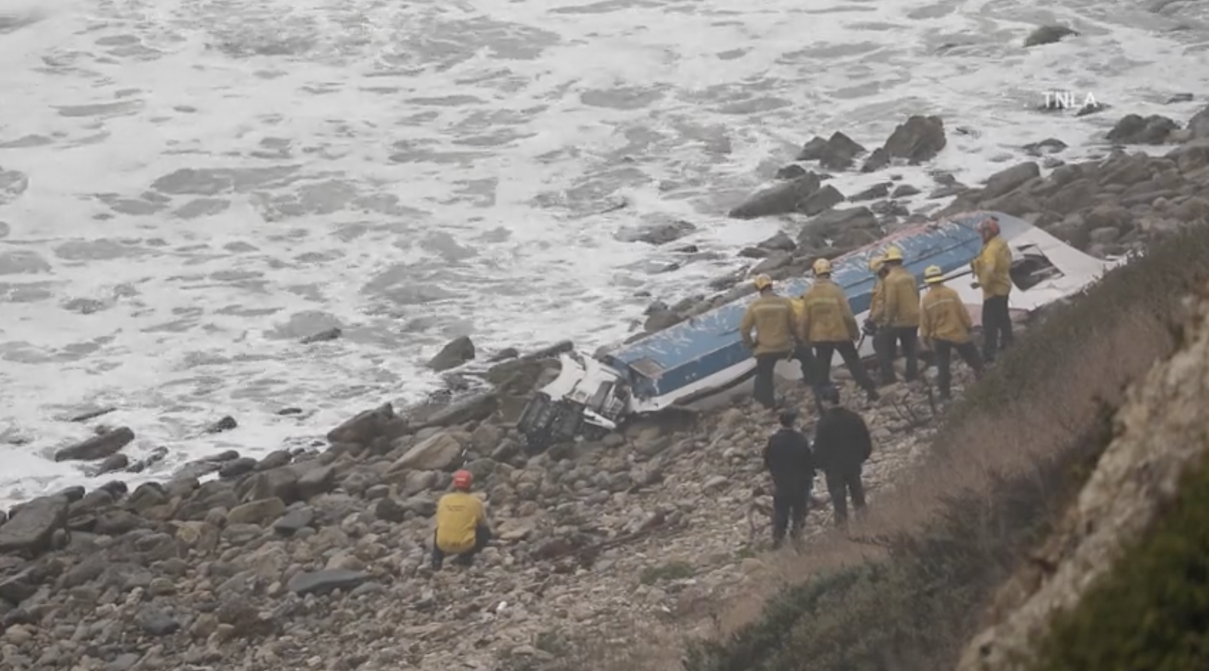 The search began Tuesday and their boat was eventually found overturned on the shore. A couple of people who saw the wreckage told KTLA that they saw the boat filled with holes and life vests, among other objects, scattered around the scene.