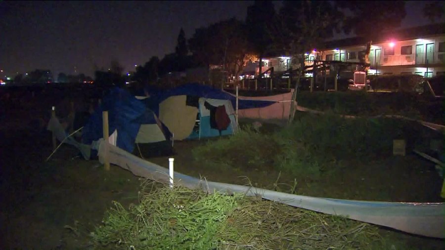 Crews on Thursday were working to clean up an Orange County homeless encampment off the 57 Freeway not far from Angel Stadium. Chip Yost reports from Orange for the KTLA 5 News at 1 on Feb. 9, 2017.
