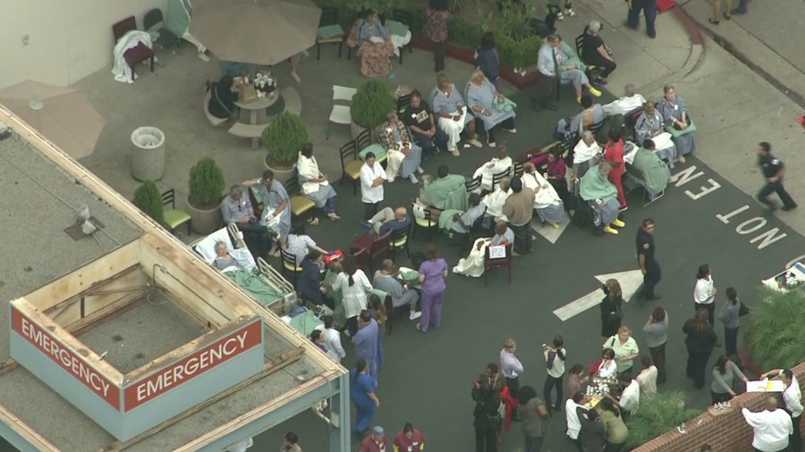 Aerial video from Sky5 showed patients in hospital gowns and medical staff in the hospital’s parking lot, near the emergency entrance. All patients were back inside by 6 p.m.