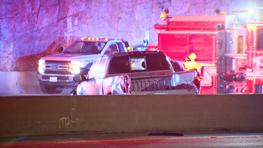 Video showed a badly damaged pickup truck, a sedan with airbags deployed and Deng’s LAPD patrol car left on the southbound side of the freeway as emergency crews were responding.