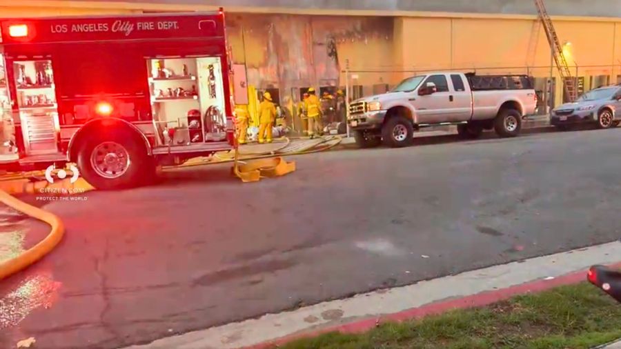 Firefighters were called around 6:27 a.m. to the 11400 block of West Exposition Boulevard, where heavy smoke was seen coming from a two-story row of storage units, according to the Los Angeles Fire Department.