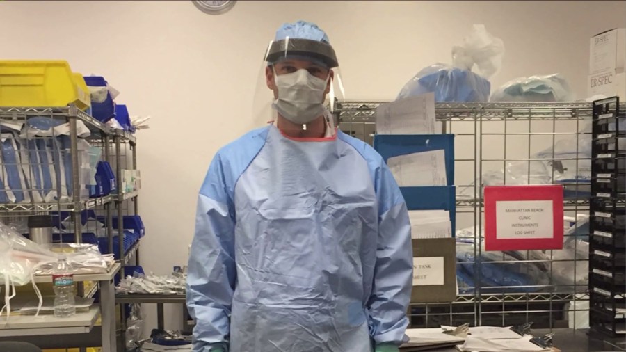 A health care worker is seen preparing for an Ebola drill at UCLA Medical Center in October 2014. (Credit: KTLA)