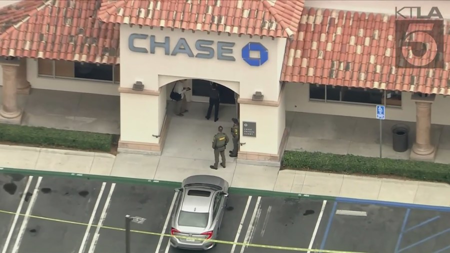 An Orange County Sheriff’s Department spokesperson told KTLA 5 News that deputies were dispatched to the Chase Bank near the intersection of Portola and Bake parkways in Foothill Ranch just after noon.