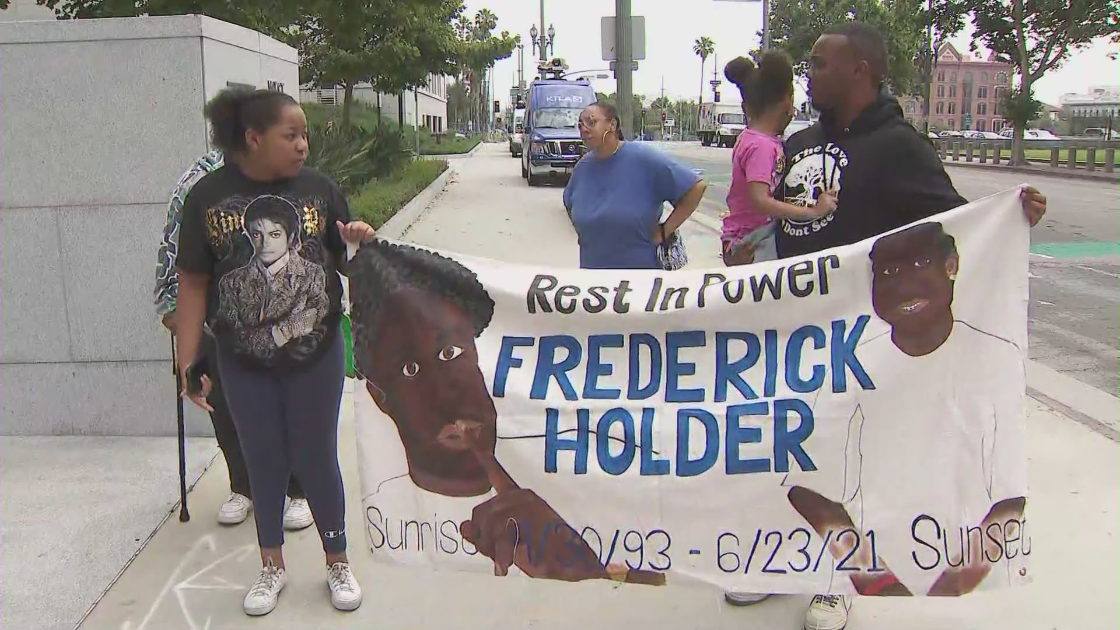 On Thursday, a day before the second anniversary of his death, Holder’s loved ones held up a sign outside of Sheriff’s Department headquarters saying “Rest in Power Frederick Holder.”