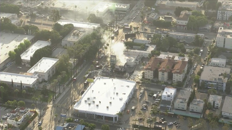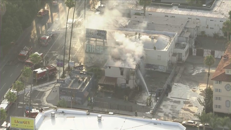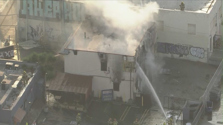 The building “looks like an abandoned structure,” KTLA 5’s Gil Leyvas said from Sky5; LAFD later confirmed that the building was indeed vacant.