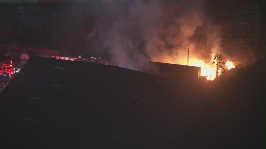Sky5 was overhead as at least one palm tree could be seen burning in the blaze.
