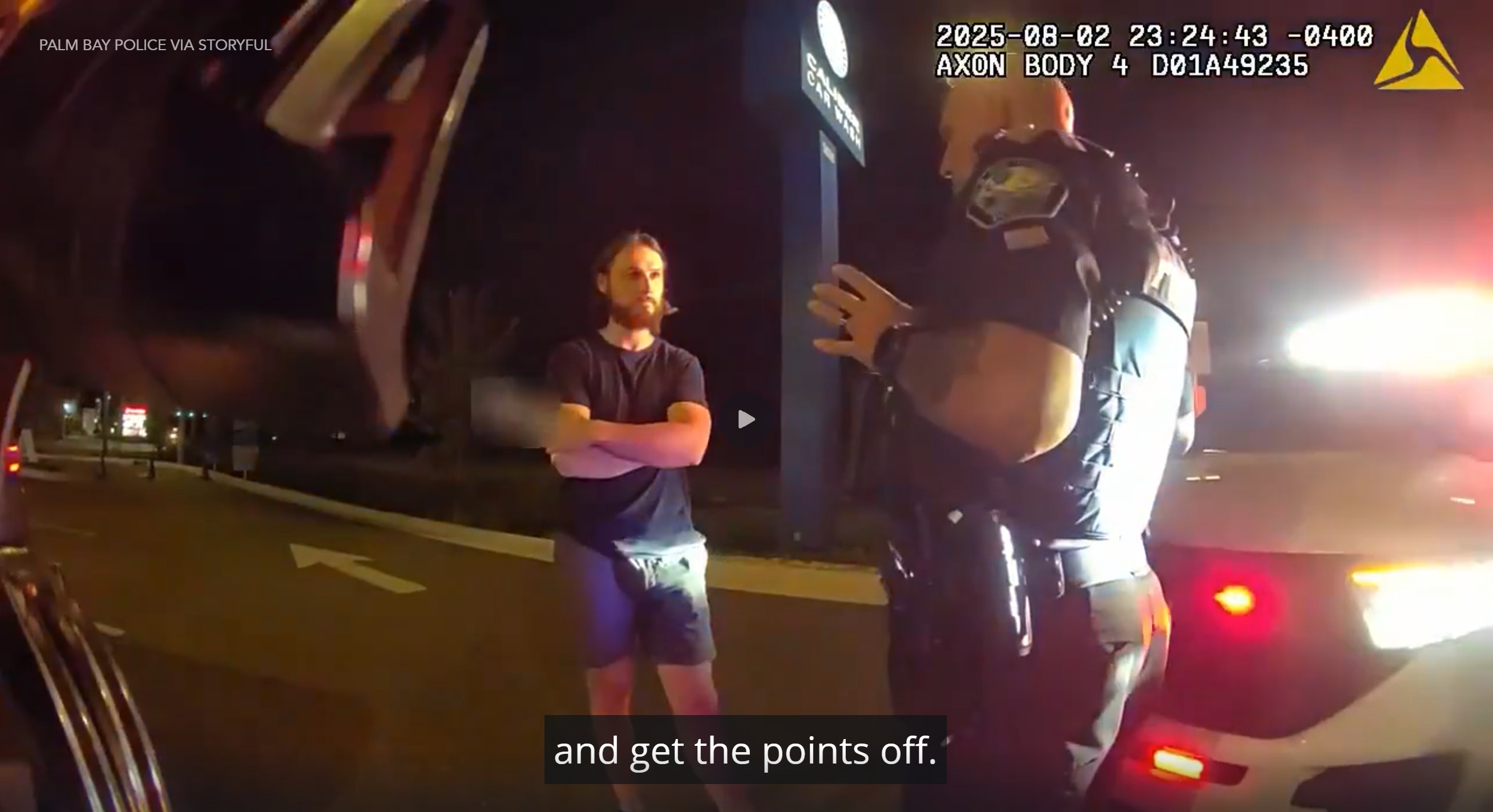 Palm Bay Police released footage from an August 2, 2025, traffic stop in Brevard County, FL, where Rinderknecht was pulled over for driving 71 miles per hour in a 45 mph zone as he was making food deliveries.