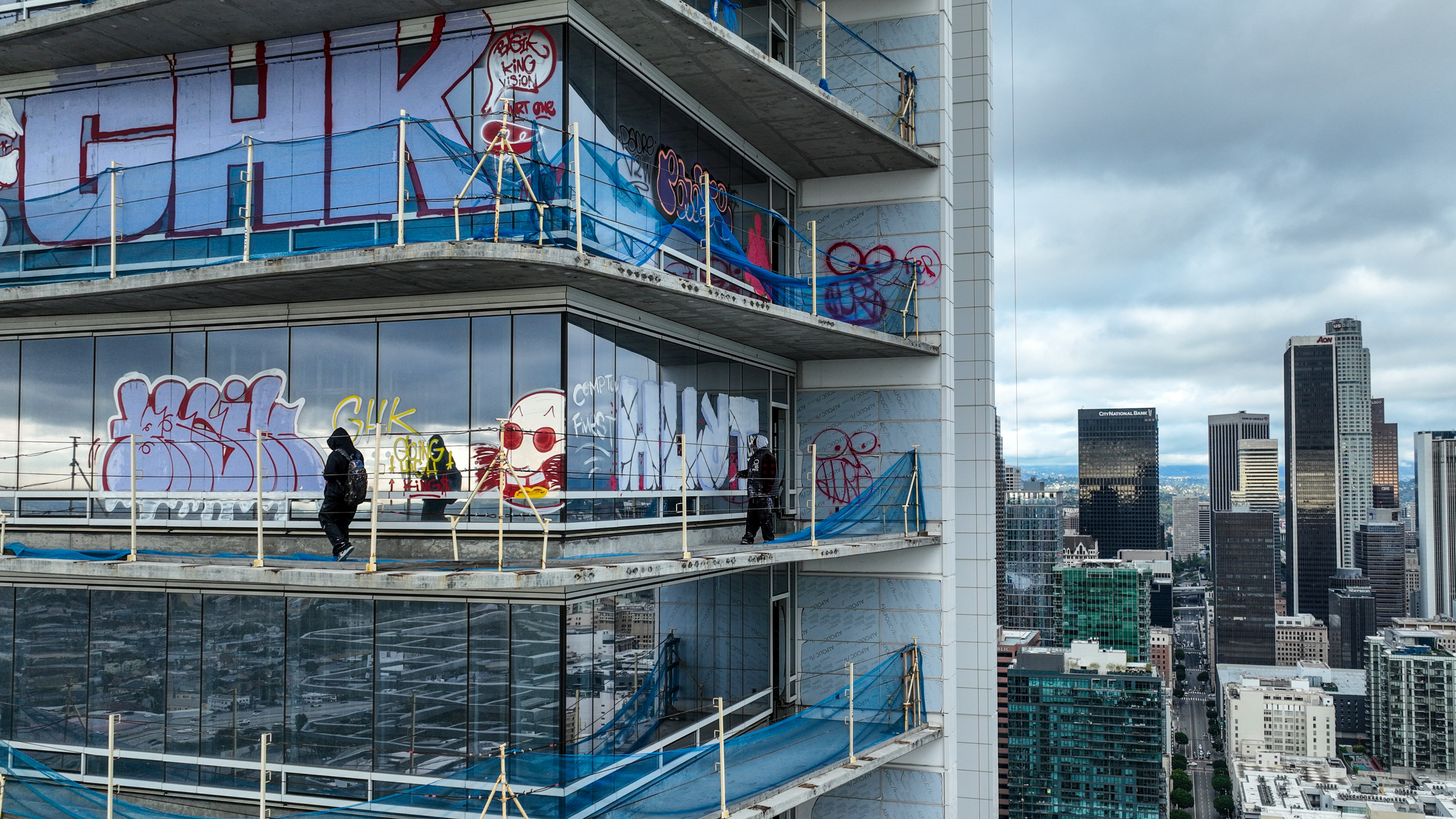 The Oceanwide Plaza development, which has sat incomplete since January 2019, gained national attention after being heavily tagged with graffiti appearing on more than 25 floors.